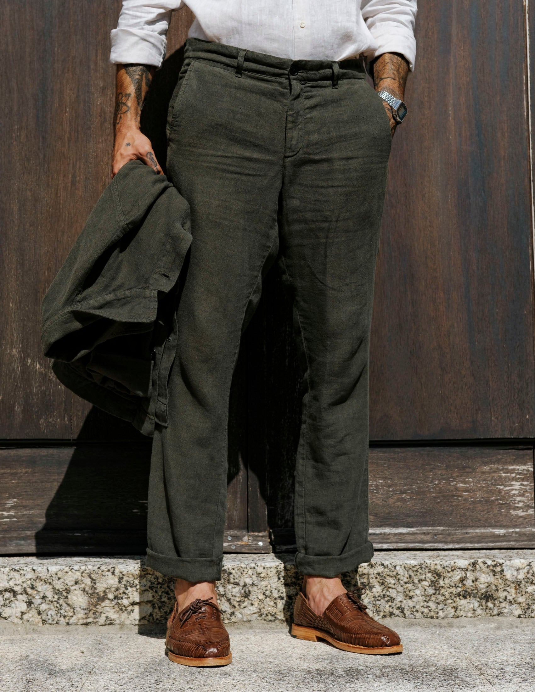 The flax used for these trousers was grown in France, Netherlands or Belgium.