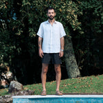 Unser kurzärmeliges Leinenhemd Lido ist die beste Wahl, um im Sommer cool zu bleiben. Der leichte und atmungsaktive Stoff wirkt von Natur aus antibakteriell und bildet keine Pilling. Am besten sieht das Hemd leichten verknittert aus – also kein Bügeln nötig!