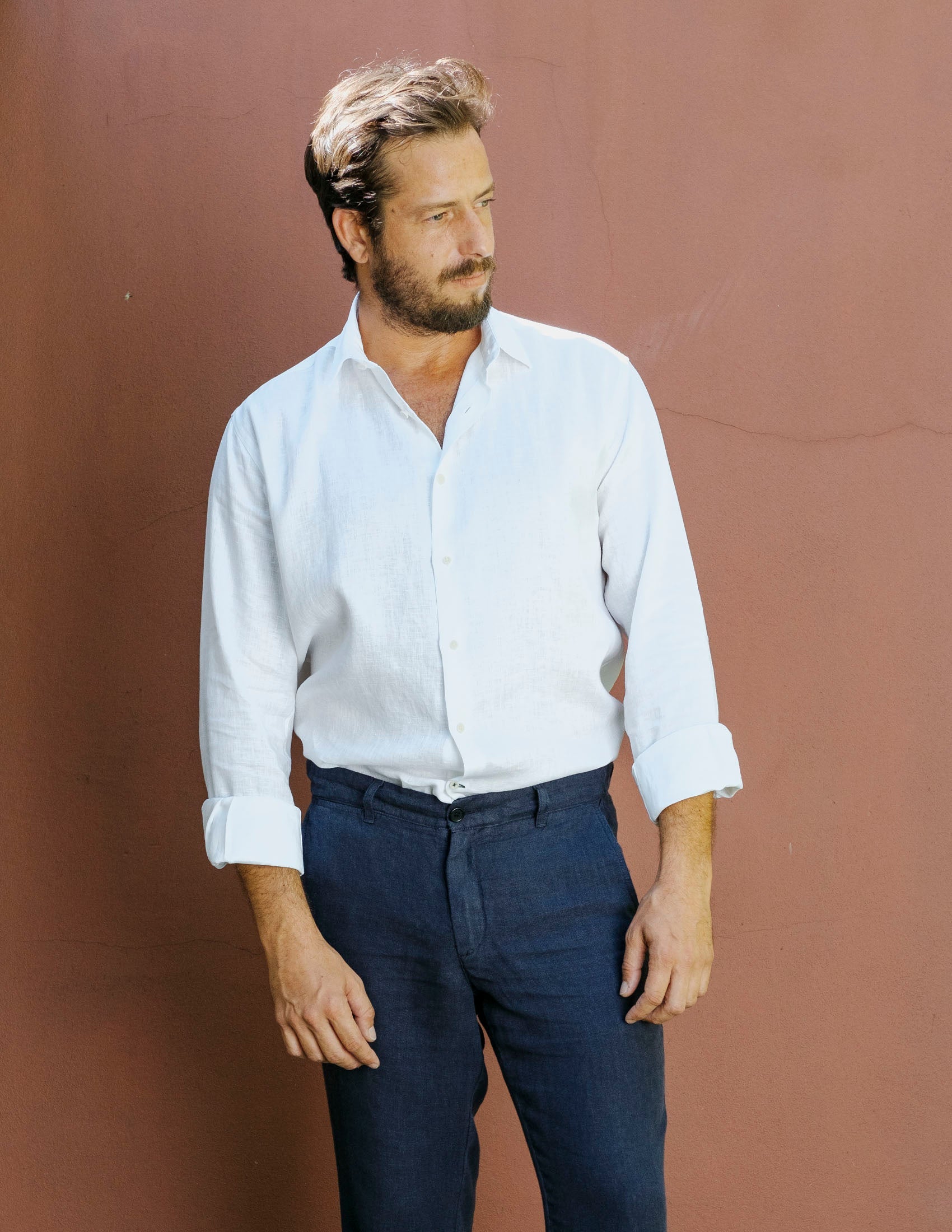 Our linen shirt Verzasca is your best pick for staying cool in summer. The light and breathable fabric acts antibacterial by nature and does not pill. Looks stylish with a slight crinkle – so no ironing needed!