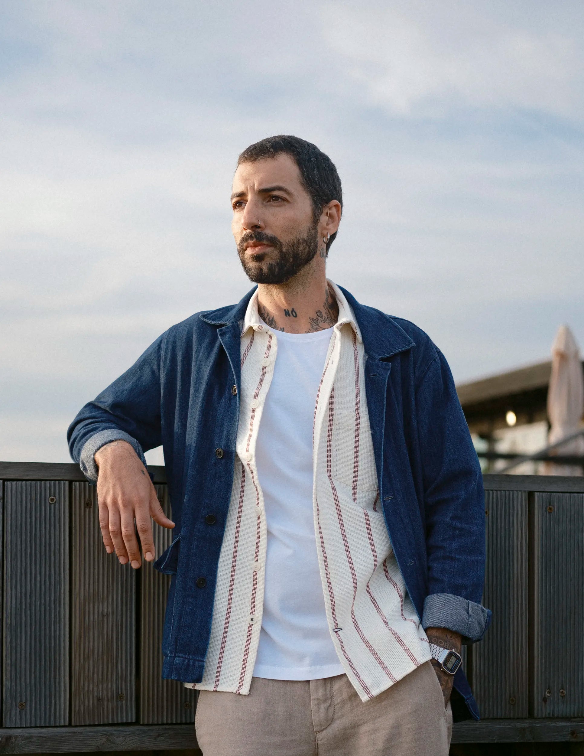 Our collections are designed to fit seamlessly together. If a shirt in size M fits you, a t-shirt or overshirt in M should suit you perfectly too.